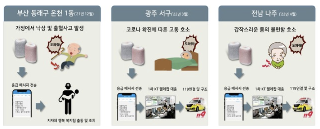 그런 상황에서 의외의 동반자가 등장했다. TV 옆에 덜컥 끼워져 온 AI 스피커가 어느새 55만 명의 어르신을 돌보는 친구가 된 것이다. AI 복지사가 직접 전화를 걸어 어르신들의 상태를 확인하고, 그 데이터를 축적해 맞춤형 서비스를 제공한다. IoT 센서는 1분 단위로 문 열림과 조명 상태를 체크하고, "지니야 살려줘"라는 한 마디면 즉시 119로 연결된다. 복지사가 대면으로 해야 하는 일을 AI가 보조하면서, 오히려 더 촘촘한 돌봄이 가능해진 것이다.