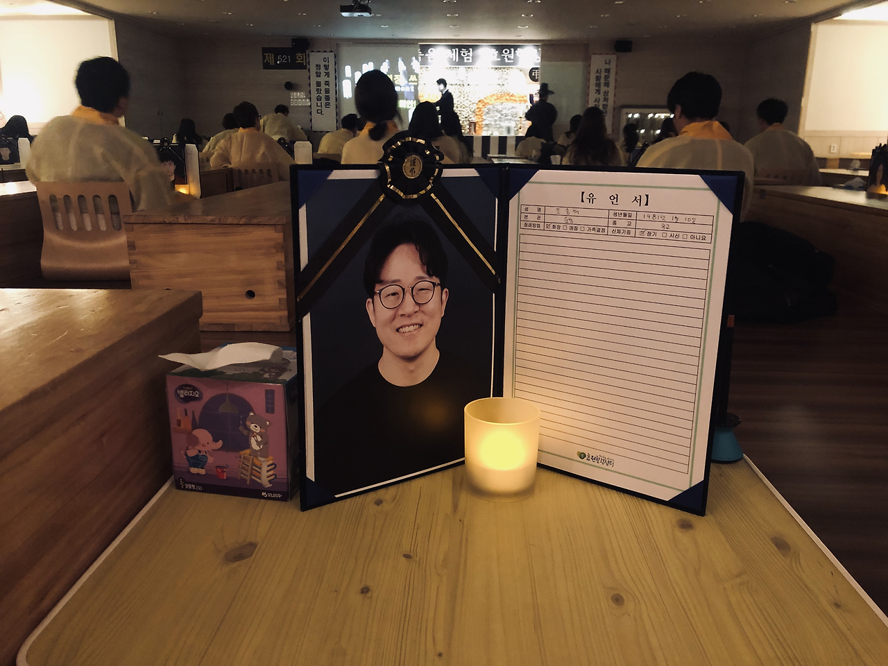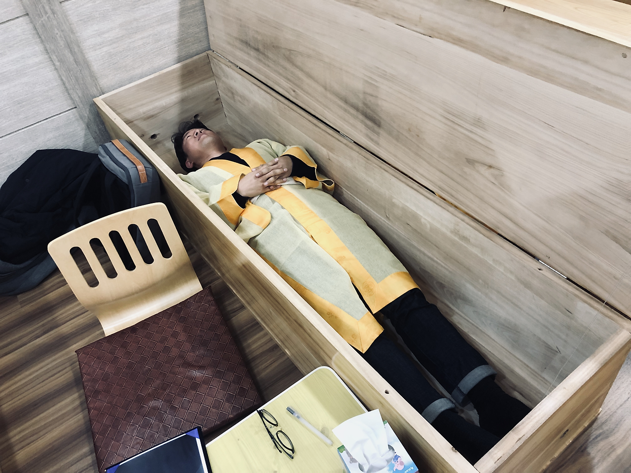 (위의 사진은 실제 입관 체험을 다 마치고 나서 나중에 설정으로 찍은 것이다)