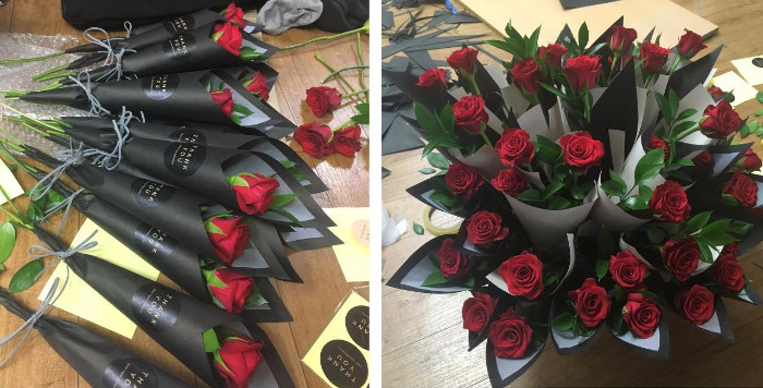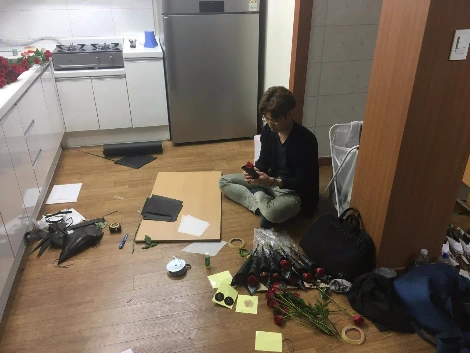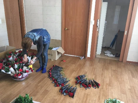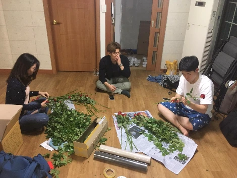 새벽 1시 반을 넘겨 도착한 우리는 본격 장미 포장에 들어갔다.