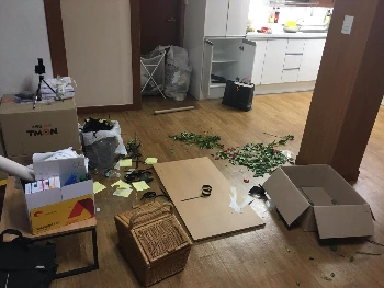 우리는 토요일 새벽 1시 반~아침 8시까지 포장을 했고