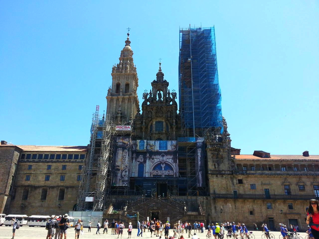 맥주 한 캔을 사들고 대성당 앞 광장에 앉았다. 멍하니 대성당 정문을 올려다보는데 벌써부터 감정이 벅차오르기 시작한다. 1년 전에는 오른쪽 사탑을 보수하고 있었는데, 이번에는 왼쪽 사탑을 보수하고 있다. 보수공사로 대성당의 온전한 모습을 보지 못한다는 것이 못내 아쉽다.