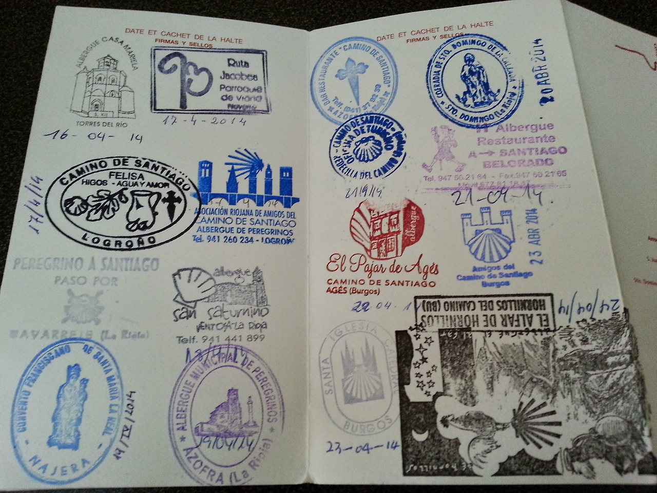 2014년 산티아고 순례길을 걸었을 때 받은 sello. 알베르게에 도착하면 순례자 여권에 도장을 찍어준다.