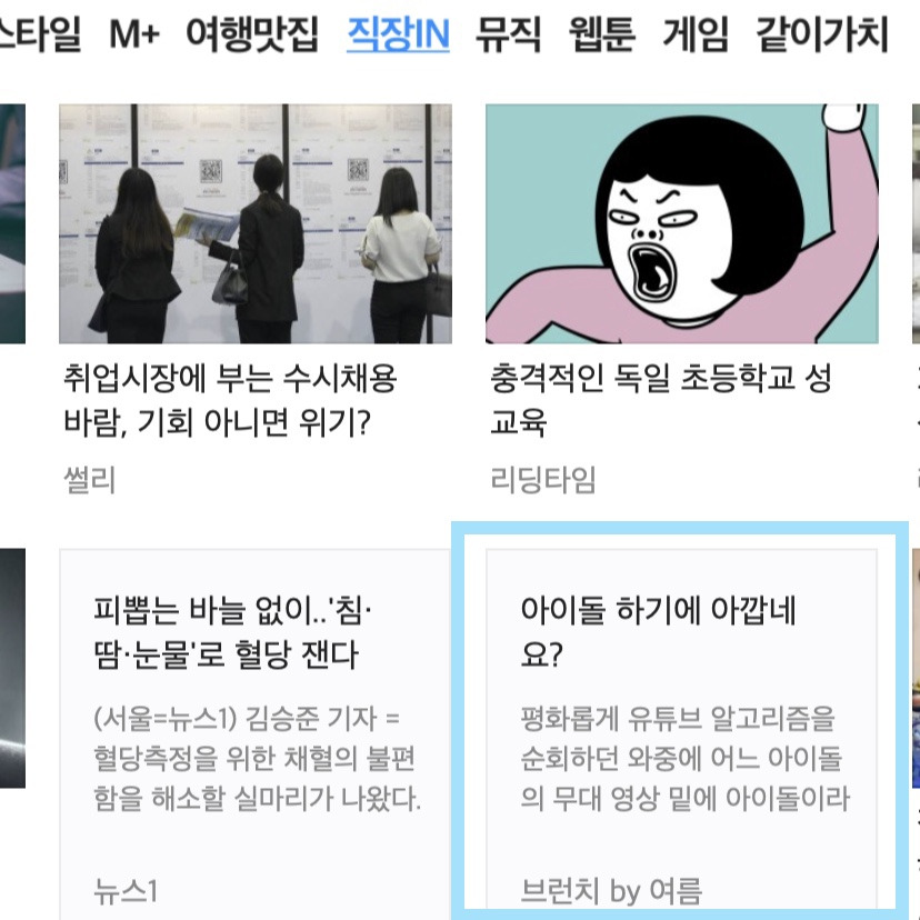 처음에 조회수가 1000을 돌파했다는 알림을 받고 이게뭐야? 뭔데? 이러고 들어가봤더니 다음 메인에 글이 올라간 거 였다. 세상에나ㅋㅋㅋㅋ 블로그 인생하면서 한번도 안 겪어본 일을 브런치에서 모조리 다 겪는 것 같다. 도대체 어떤 알고리즘을 통해 선정된 걸까.. 너무 궁금하다. 저 글은 홧김에 갈기듯이 써서 올린건데 제일 힘 빼고 막 쓴 글이 메인에 올라가다니 신기한 일이다.