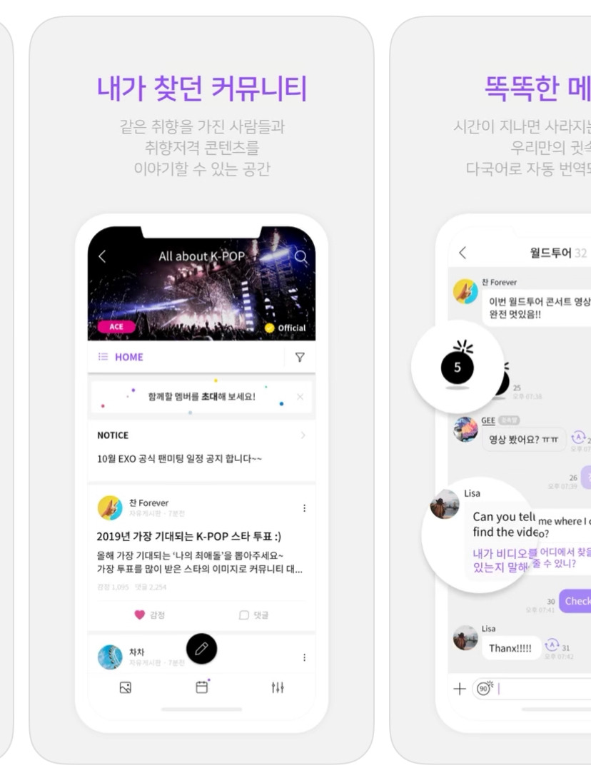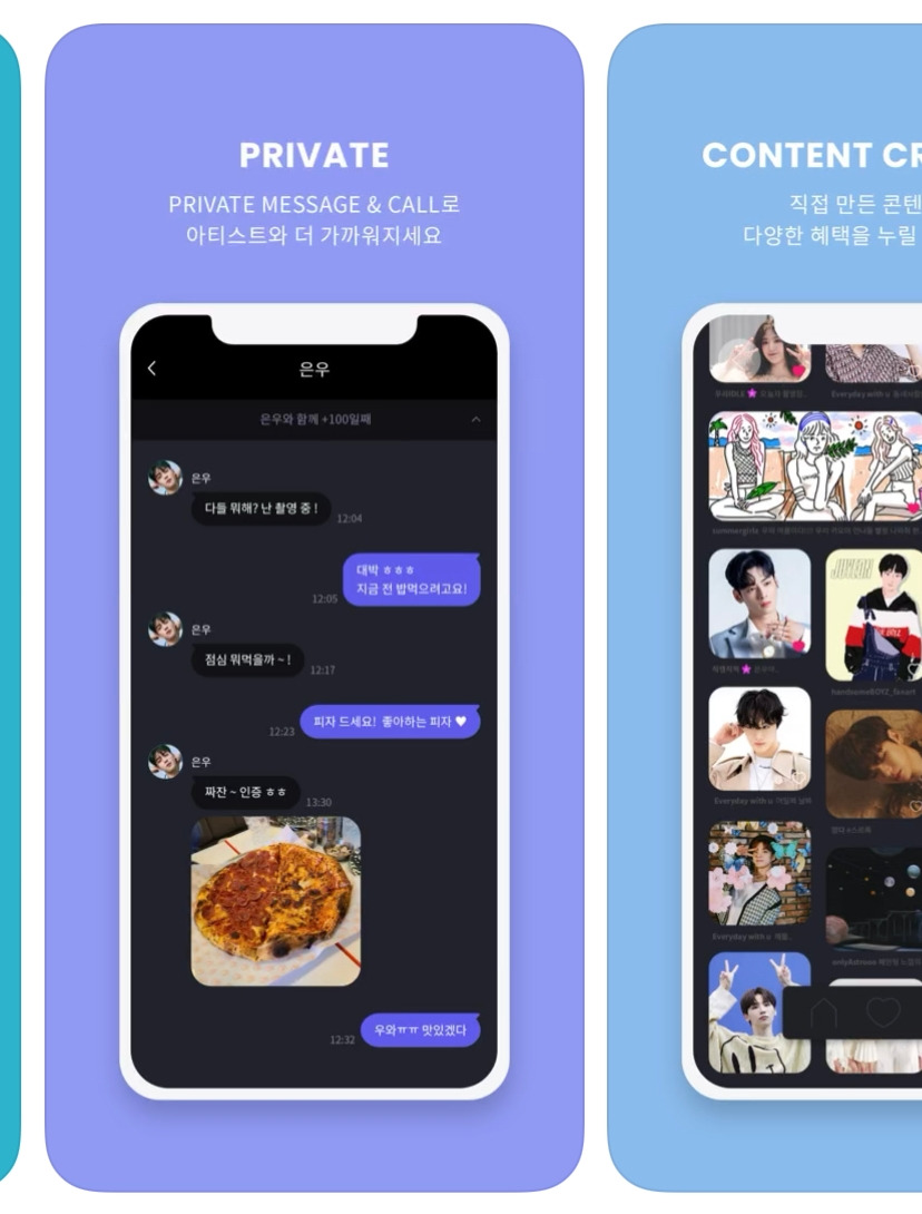 소통 전용 플랫폼 중 메이저 플랫폼에 대한 리뷰를 하기에 앞서, 아이돌과 소통할 수 있는 플랫폼은 나의 아티스트가 얼마나 자주 찾아오느냐에 따라 인상이 달라질 수밖에 없다. 아티스트가 알림을 울릴 때만 해당 플랫폼을 이용할 기회가 생기고 자주 오느냐 아니냐에 따라서 전반적인 즐거움이 달라질 수밖에 없으니까.