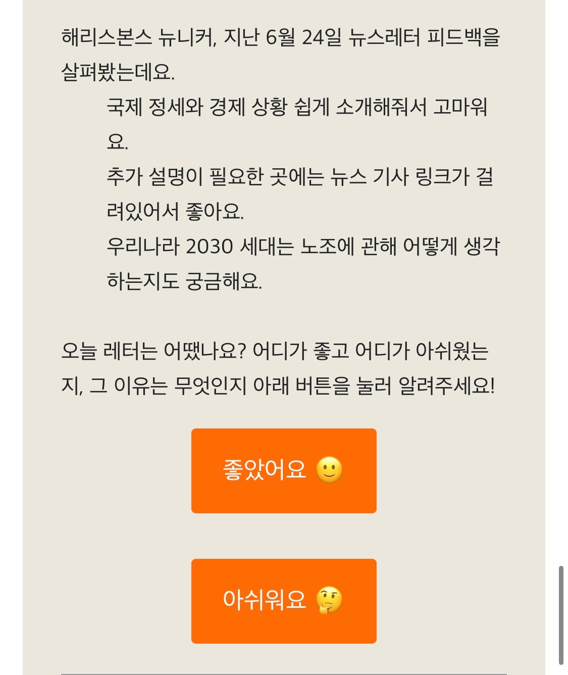 김소연 대표는 짧은 시간을 들여 이슈 전반을 빠르게 파악할 수 있는 구독 서비스를 경험한 뒤 매우 만족했다고 한다. 한국에서도 뉴스를 봐야 하지만 일상이 바쁘고 어려운 뉴스를 보는 것이 어렵다고 느꼈고, 주변 친구들도 비슷하게 생각한다는 것을 확인했다고 한다.