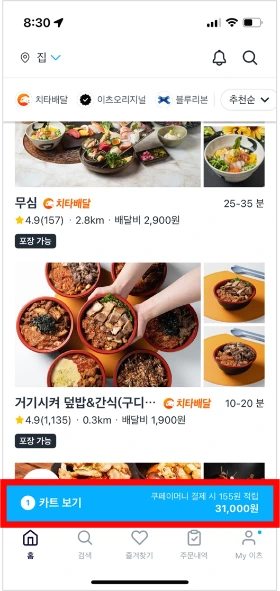 카트 보는 화면이 하단 부분에 고정됨으로써 내가 지금 얼마를 카트에 담아놨는지 빠르게 확인할 수 있다.