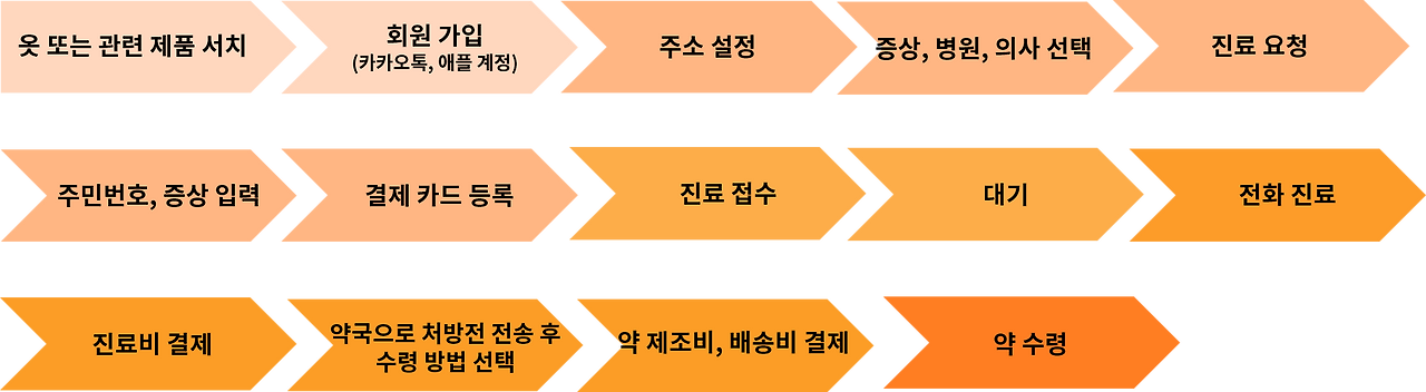 닥터나우의 고객들은 비대면 진료를 보고 약 수령까지 총 14 단계의 프로세스를 거쳐야 한다. 그럼 이 14단계를 거치면서 고객들이 어떤 과정을 통해 비대면 진료 및 약 수령까지 완료하는지 AARRR을 통해 분석해보자.