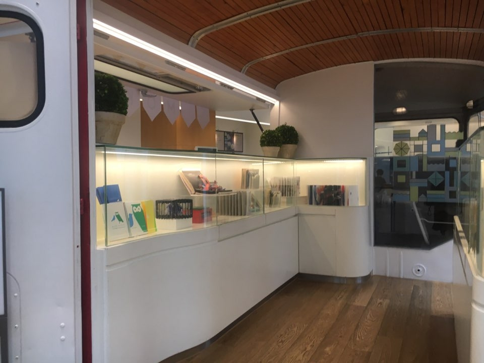 1층 입구 왼쪽에는 세계 여러 나라 그림책을 전시해 놓은 버스가 있습니다. 올라가 보지 않고는 배길 수 없는 귀여운 버스입니다. 그 옆에는 미술관을 대표하는 캐릭터들이 그려 있는 굿즈들을 판매하는 부스도 마련되어 있습니다. 창가 쪽에는 잠시 쉴 수 있는 테이블과 의자가 마련되어 있습니다. 관람 전후에 잠시 쉬어가는 공간입니다.