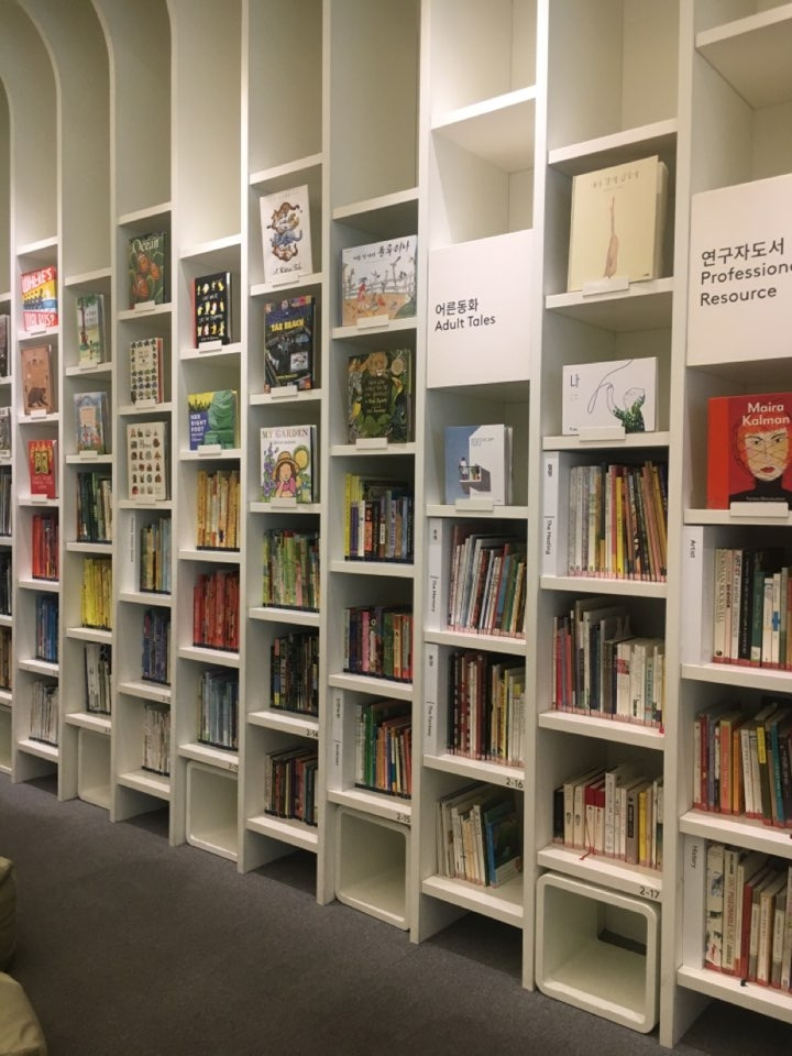 이 미술관의 또 하나 장점은 어른들을 위한 동화 섹션이 따로 마련되어 있다는 것입니다. 비교적 신간이 많이 있고 종류도 다양해서 아이가 책을 읽는 동안 엄마도 함께 즐길 수 있습니다.