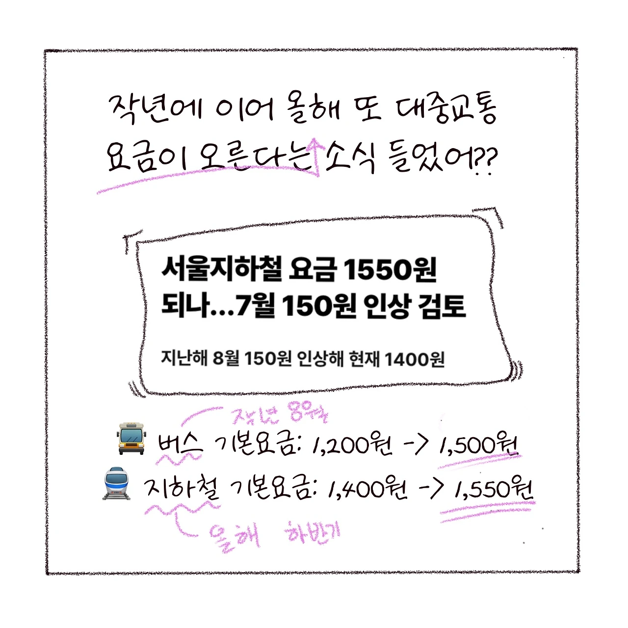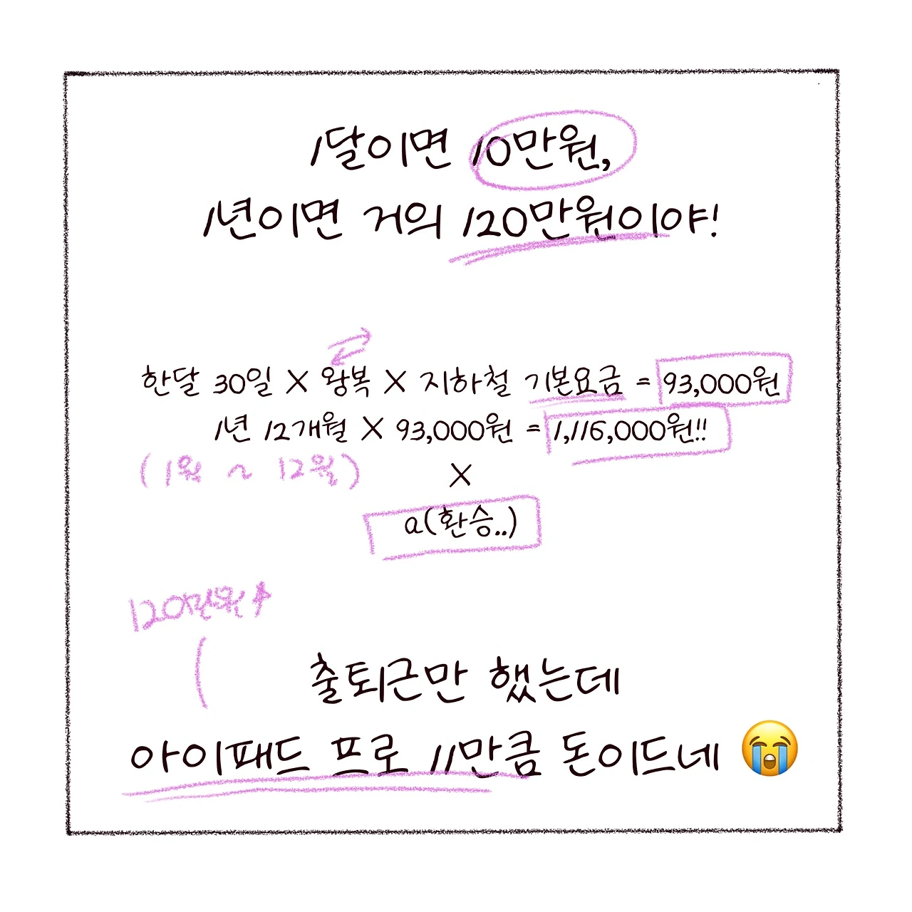 올해 시작한 지 얼마나 됐다고 벌써 지하철 요금 인상 계획이 들리죠? 1 달이면 10만 원 1년이면 무려 120만 원이나 된다고요!