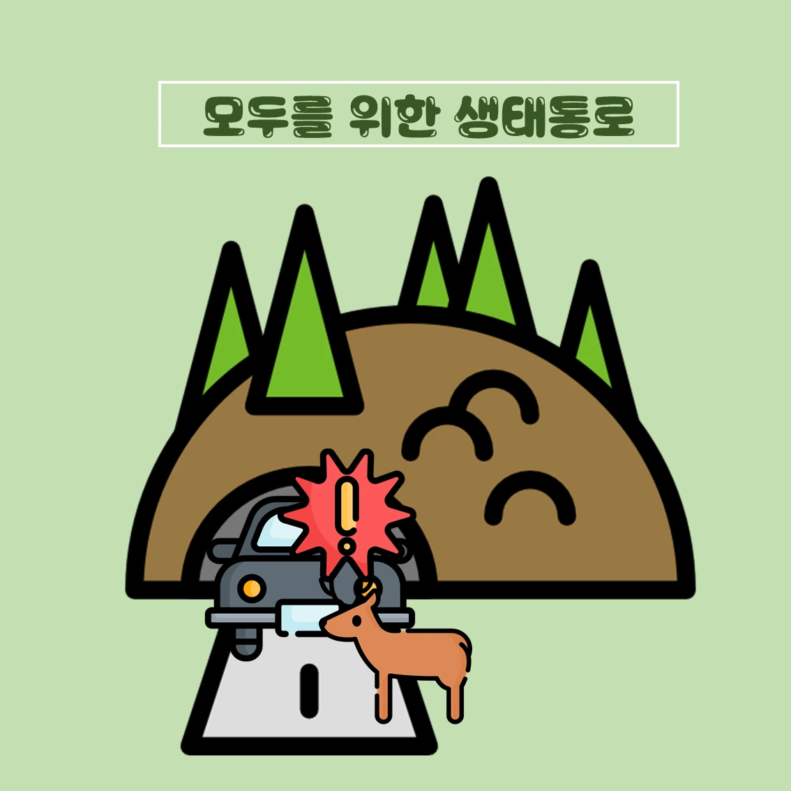 사람의 이동수단에 있어서 역사적인 한 획을 그은 자동차의 발명 이후로 수많은 자동차 도로가 생겼다. 인간이 더 빠른 길을 원하고, 기술이 발전하며 전국 각지를 돌아다니는데 걸리는 시간은 점점 더 단축되고 있다. 그러나, 우리의 이동이 편리해진 만큼 야생동물의 이동은 불가능 해졌다. 너구리에게 낮이고 밤이고 끊임없이 빠른 속도로 달려오는 자동차를 피해서 8차선 도로를 무사히 건너갈 방법은 없는 것이나 마찬가지 일 것이다. 이러한 문제로 인해 생태 통로의 필요성이 제기된 이후 우리나라에 많은 생태통로가 건설되었다. 차를 타고 도로를 달리다 보면 이런 생태통로를 종종 만날 수 있다.
