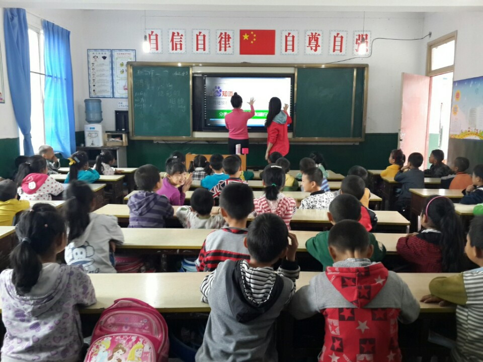 그곳에는 비록 화장실 칸막이는 없을지라도, 사진에서와 같이 매 교실에는 칠판이 꽉차는, 심지어 '터치 스크린' 디스플레이가 설치되어 있었다. 어릴 때 나름 'IT강국' 서울 중심에 살았음에도 이런 스크린 컴퓨터는 쓰지 못했었다. 놀라서 선생님들께 여쭤보니 몇달전에 정부에서 각반에 싹 설치해주고 갔다고 한다. 그래서 이들은 비록 오르간은 없을지라도, 음악수업은 바이두에서 직접 노래를 찾아서 음악을 틀어놓거나, 노래방 기계같은 가사자막까지 나오는 투도우(土豆) 영상 플랫폼을 이용해 진행했다.