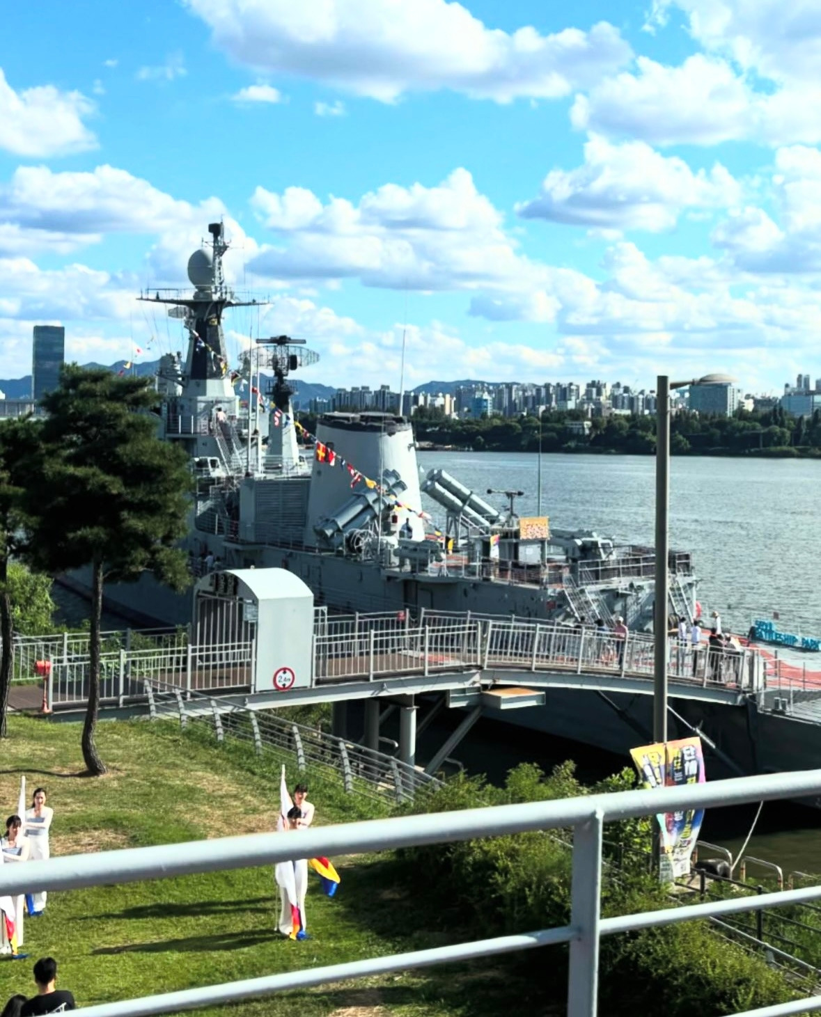 배가 너무 흔들리면 밥 대신 꺼내먹던 전투식량과 밥을 먹다가도 다친 사람이 생기면 바로 수술대로 바뀌는 식탁이 있던 식당은 그야말로 생사가 오가는 곳이었다. 새파란 청춘의 군인들이 기숙사같은 이층침대 방에 자려고 누우면 누가 제일 먼저 떠올랐을까? 벽 한 켠에 붙은 생명의 전화 스티커가 눈에 띄었다. 지금이라도 이 곳에 나와 같은 누군가가 있었다는 사실을 몸소 느낄 기회가 생겨 다행이다. 어느 덜 떨어진 자의 반쪽짜리 믿음이나 채워지지 않는 결핍만 드러내는 비루한 힘자랑 때문에 애꿎은 사람들과 그의 가족이 슬퍼할 일 없는 날이 오긴 올까? 이외에는 선내에 마실 물이 없거나 물이 차오른 비상상황에 대비해 빗물을 받거나 바닷물을 퍼낼 수 있는 용도로 만들어진 모자에 대한 설명 등이 기억에 남는다. 마지막으로 아이들은 헬멧과 구명조끼를 걸치고 해군 할아버지의 지시에 따라 멀리 한강 어디쯤을 향해 “함장님, 오른쪽에 오리배가 보입니다!“라고 밝게 외치며 기념사진을 찍었다. 마치 아무 일도 일어나지 않을 것처럼 평화로운 날이었다.