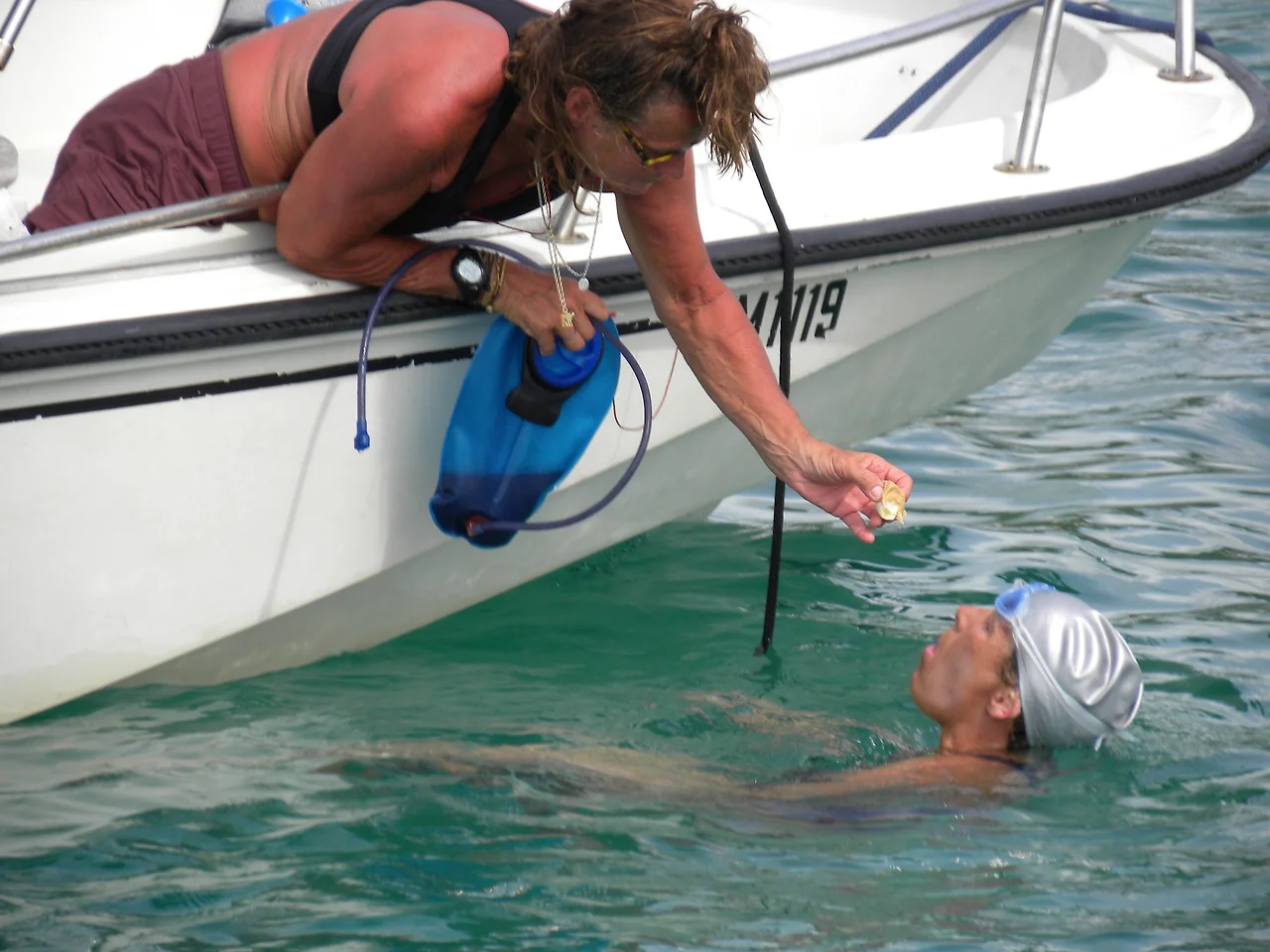 만 킬로미터 넘게 떨어진 곳에서 날아오는 모래바람까지 느끼는 바틀렛의 바다에 대한 섬세한 이해와, 나이애드가 수영하는 동안 체력이 떨어지지 않도록 정성껏 아기 돌보듯 시간 맞춰 물과 영양분을 공급하며 격려하는 보니의 도움으로, 그녀는 바다에서 해파리에 쏘여 죽을 뻔 하고 상어를 코 앞에서 만나는 등 어쩔 수 없이 닥쳐오는 불운도 담담히 겪어내며 긴 시간 버티다 마침내 조류와 방향이 맞아 수월하게 헤엄칠 수 있게 되는 예기치 못한 행운을 만나 목적지에 거의 다다랐을 때, 최대의 고비를 맞이한다. 너무 오랜 수영으로 지쳐 더 이상은 앞으로 나아갈 수 없었던 것이다. 보니는 이 때 직접 바다에 뛰어들어 그녀의 페이스메이커를 자처한다. 벼랑 끝에서 단 한 번의 스트로크를 살려낼 수 있도록 응원하고 지지한 친구 덕분에 나이애드는 다시 완주를 이어갈 힘을 얻는다.