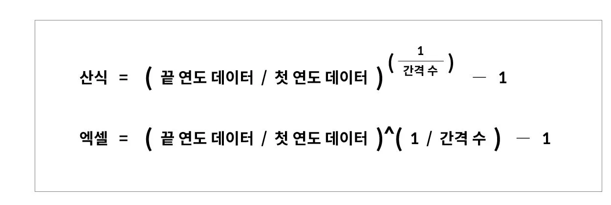 이렇게 CAGR(연평균 성장률, 위에서는 R을 의미)을 구하는 산식을 도출했네요.