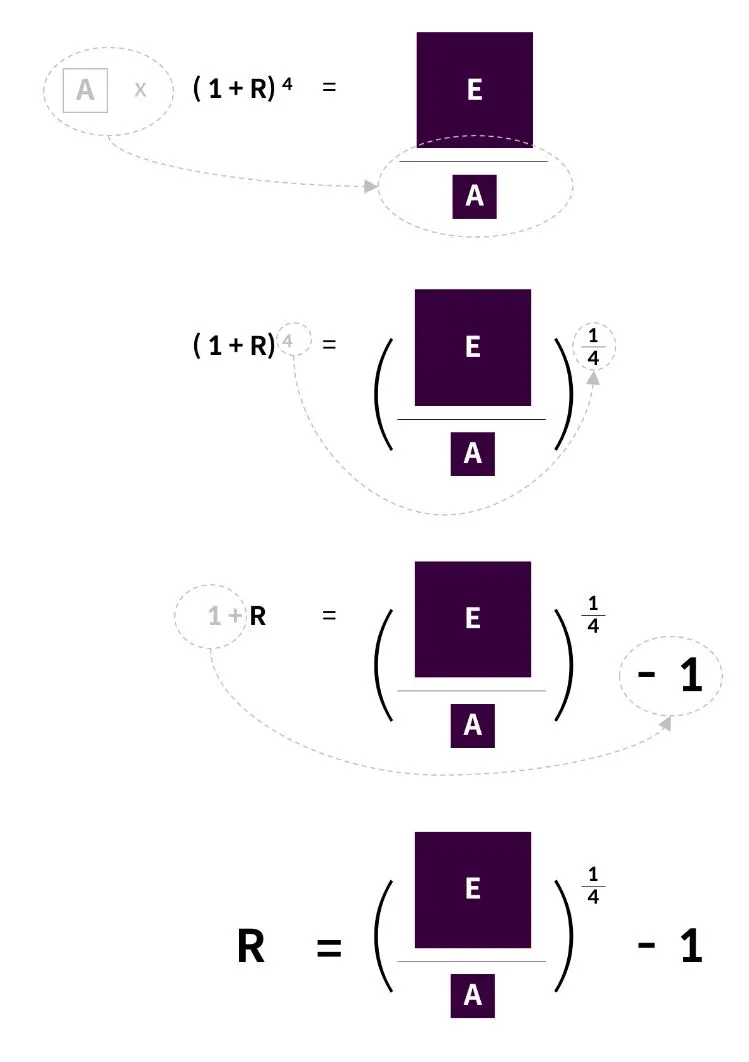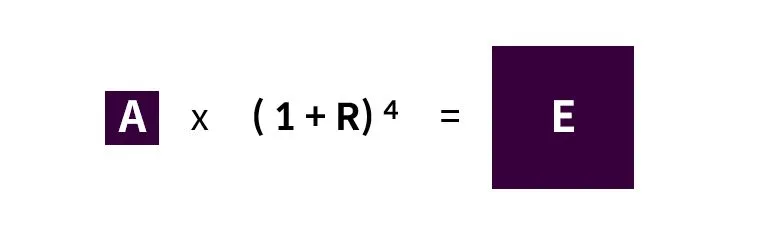 A x (1+R) x (1+R) x (1+R) x (1+R) = E