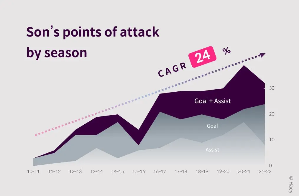 흥민's 공격포인트 CAGR : 24.01%