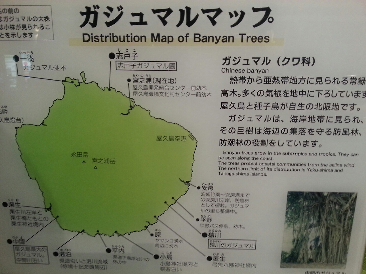 (좌) 야쿠시마 자생하는 반얀나무의 위치 지도 (우) 야쿠시마 섬의 지질 설명 그림