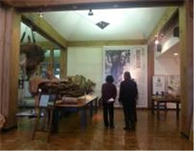 (좌) 부러진 야쿠스키 나뭇가지 전시 (우) 벌채 도구 전시