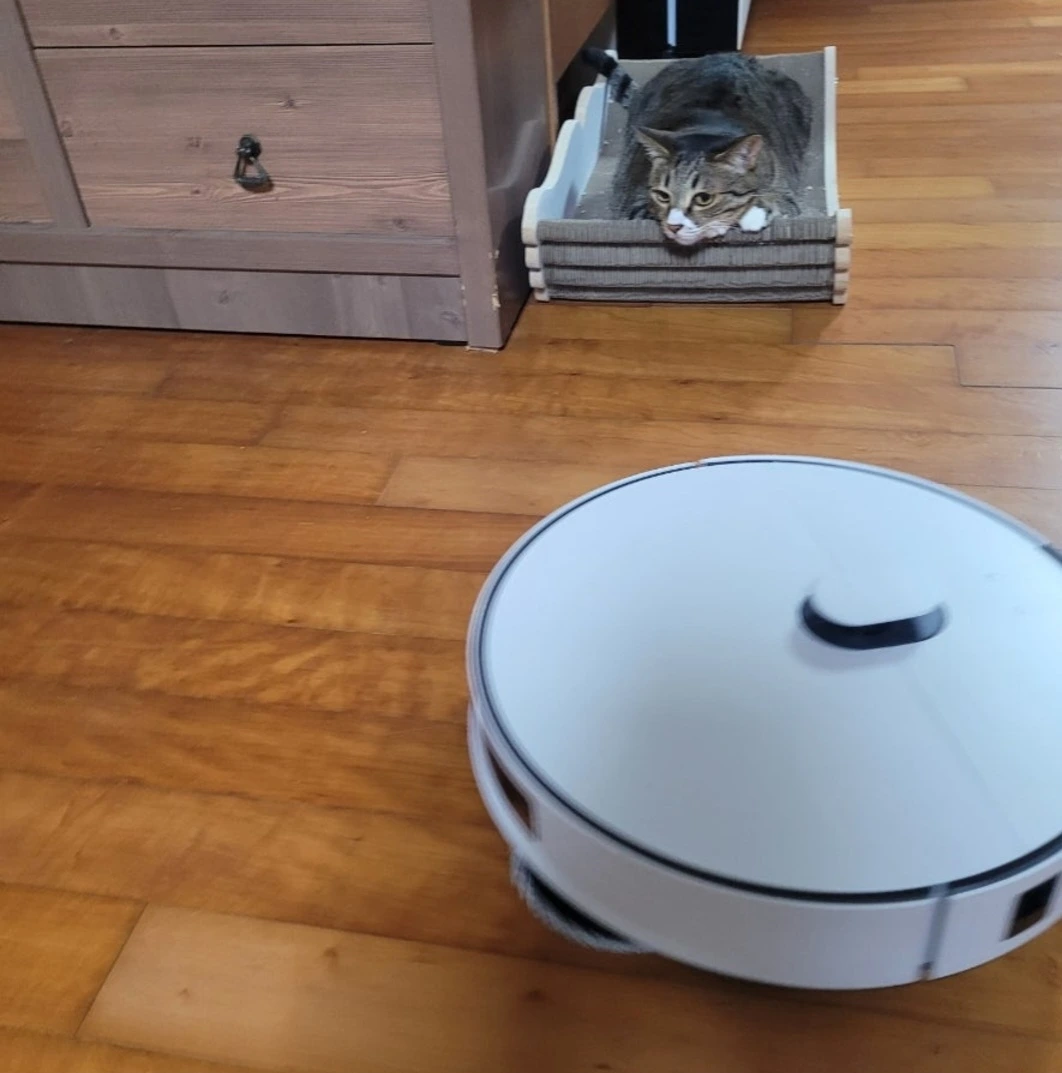 아마 내가 밖에서 청소를 작동시키면, 심심한 홍시는 로봇 등에 올라타 집 안을 함께 누빌지도 모르겠다.