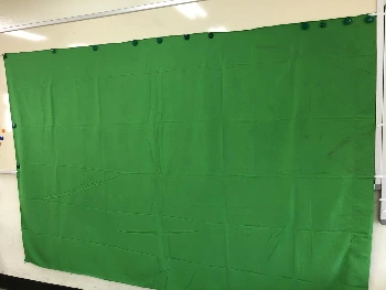 당장 크로마키 천을 구입해서 교실 뒷 벽에 붙였다. 심하게 구겨진 상태로 배송되어 이 정도라도 펴는데 거의 반 나절이 걸렸다. 몇 차례의 연습 끝에 마침내 통일신라시대 경주안에 내가 들어가서 설명하는 영상을 찍는데 성공했다.