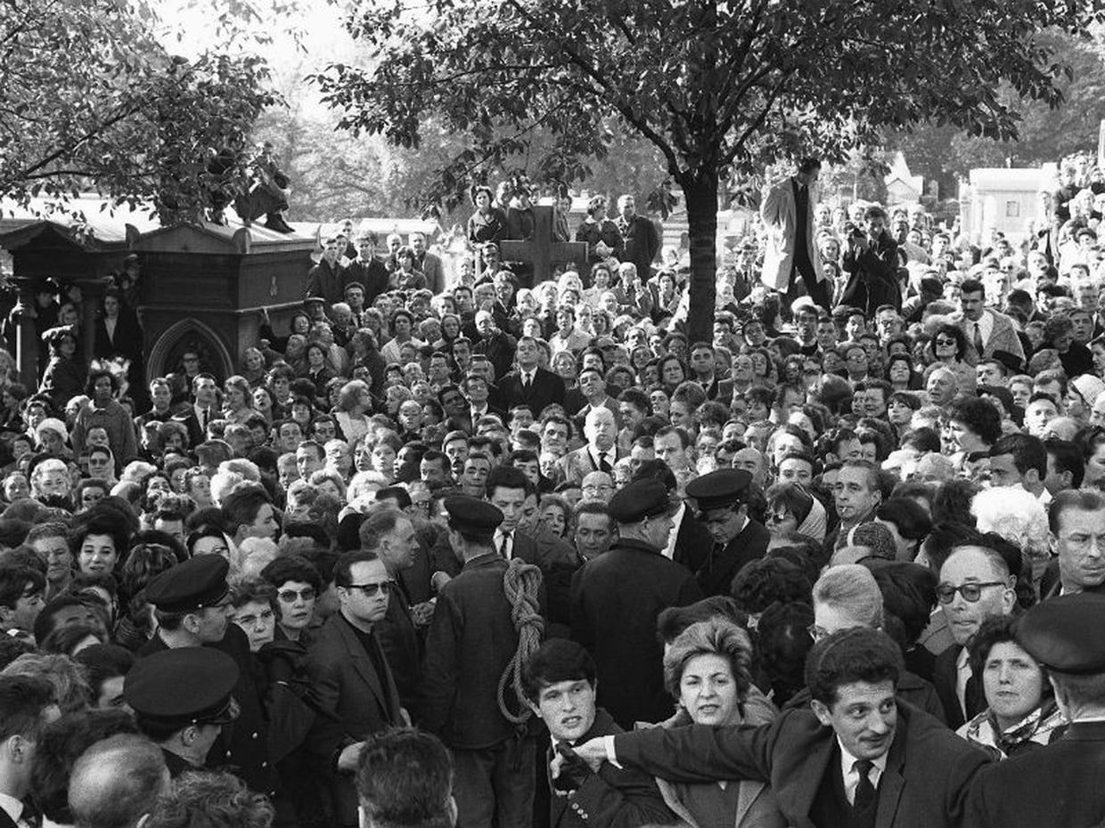 프랑스 사람들은 그녀의 죽음에 큰 충격을 받았고 애도했다. 가톨릭 신자였던 그녀는 자신의 장례가 가톨릭 식으로 치러지길 바랐지만 당시 보수적이었던 프랑스 가톨릭 교단은 그녀의 삶이 가톨릭 신자의 삶 답지 못했다고 미사를 거부했다. 대신 그녀의 장례식은 에디트 피아프를 애도하는 수만 명의 프랑스 국민들이 운집한 가운데 치러졌다.