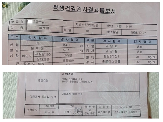 하지만 저는 고등학교 1학년 때, 이미 59kg였습니다. 그때 고콜레스테롤증 위험이라는 결과도 받았을 만큼, 어릴 때부터 건강이 좋지는 않았습니다.