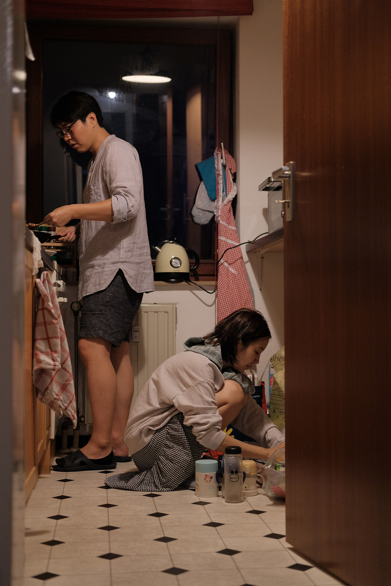 독일에서 성악가로 활동중인 처남이 '형님!' 하면서 마중을나와 우리를 맞아주었다. 나는 바로 케리어를 패스해줬다. 너무 무거웠기 때문이다. 무거웠다기보단 반찬이 든 아이스박스가 끼어있어서 핸들링 하기가 아려웠다고나 할까? J녀석도 전에 외삼촌을 본 기억이 있는지 처남을 보고 방긋 웃는다. 역에서 나와 트램을 타고 집에 들어오니 거의 저녁8시였다.