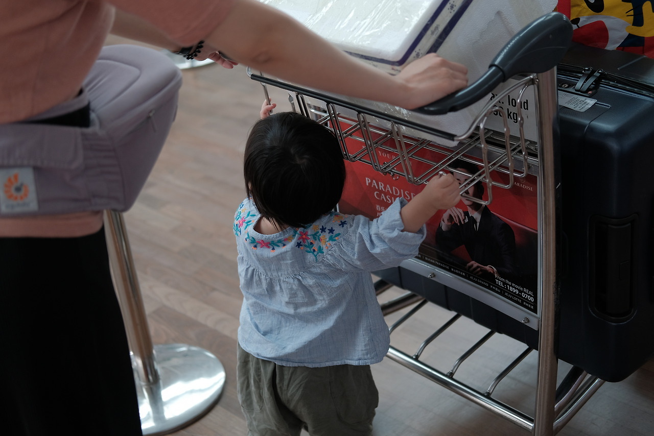 공항에서 좌석확인하고 짐을 부치고, 특히 baby meal을 가장한 반찬박스가 여간 큰 짐이었는데 그래도 가지고 오길 잘했다. 유심찾고, 환전한 돈도 찾고 간단히 밥을 먹었다. J는 이때도 기분이 최고였다. 넓고 뛰어다닐 수 있는 공간이면 어디든 좋아한다.