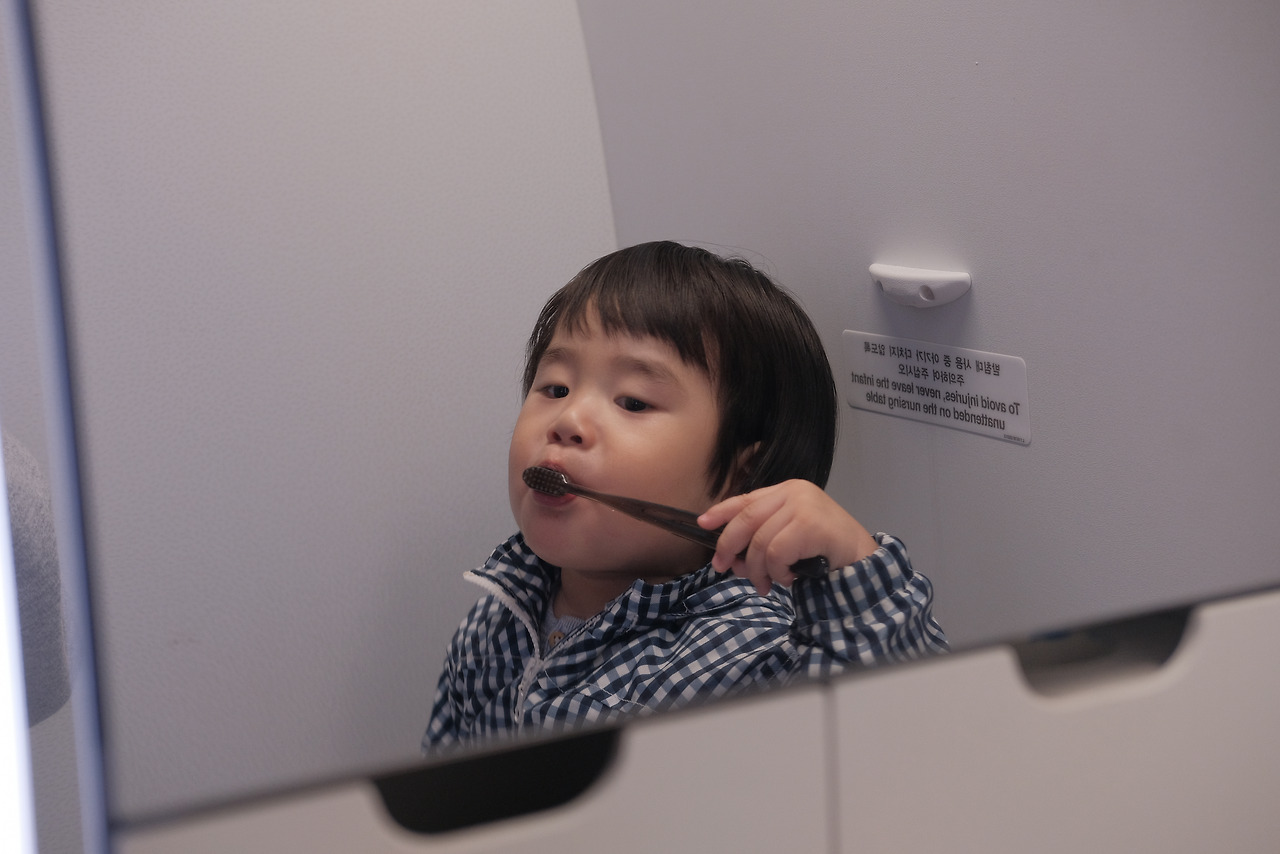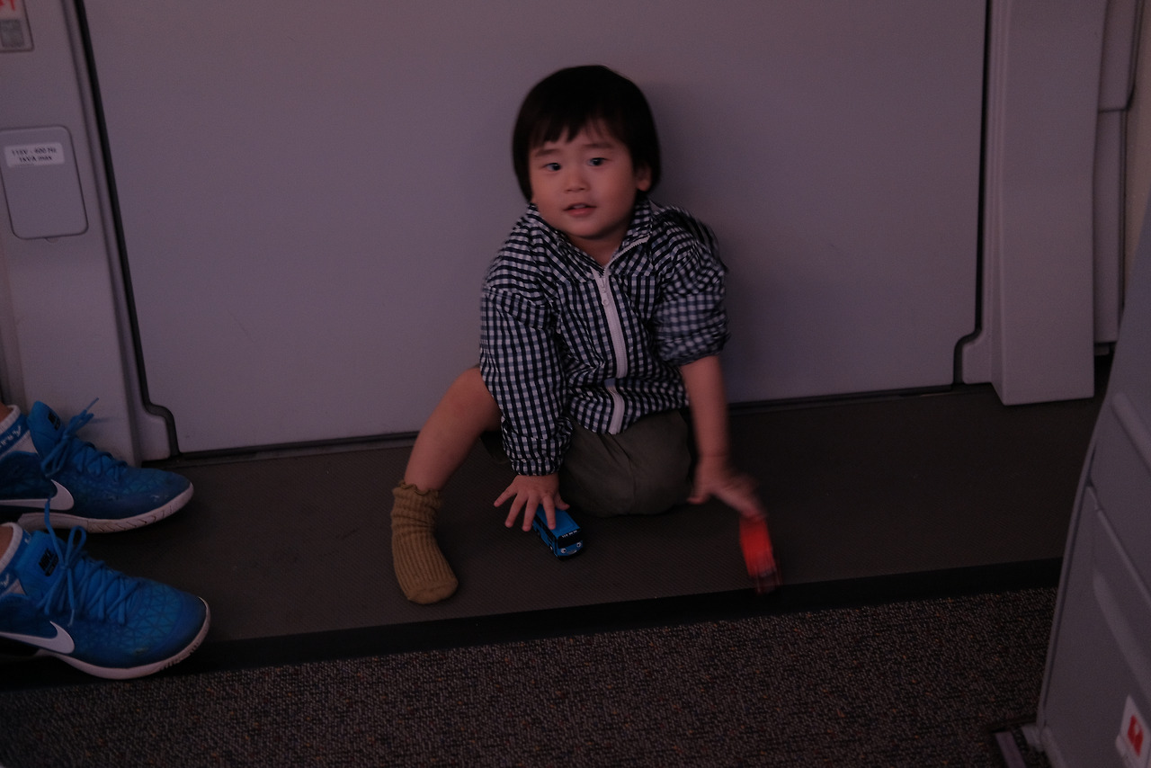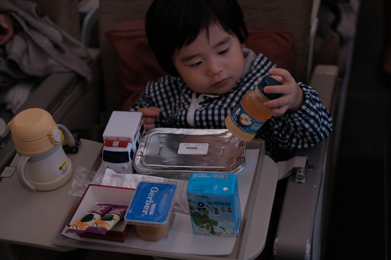 다행히 비행기 맨 앞자리에 앉게되어 조금은 넓은 좌석을 쓸 수 있었다. 비상게이트쪽 까지 넓게 되어 있어서 아이가 혼자 놀 수 있을만한 놀이터공간이 확보되었다. 실제로 아이는 온 비행기를 왔다갔다하면서 너무 잘 놀았다. 이해해 주신 탑승자분들과 아이를 귀여줘해주신 승무원분들께 너무 감사한다. 착륙 할때는 누구나 무섭고 불편하니까 그건 이해가 된다. 거의 11시간 비행동안 너무 잘 있었다. 15개월 아이가 있는 승무원에게 칭찬받을 정도로 였으니 이정도면 체질이다. 너무 기특하고 고마웠다. 아내도 불편했을텐데 호흡을 잘 맞췄다. 그리고 가장 결정적으로 출국 전에 조그만한 장난감을 엄청 이것저것 몰래 사두었던 아내 덕에 위기 상황때마다 하나씩 하나씩 마술상자처럼 꺼내서 위기를 잘 넘겼다. 물론 입국 때, 사용할 장난감들은 절대 꺼내지 않았다.