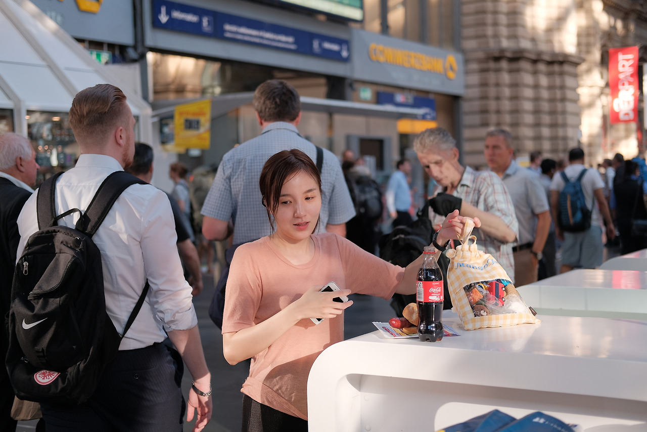 기차표를 끊어서 공항에서 중앙역으로 이동했다. 라고 썼지만 이 과정도 어리바리해서 좀 오래걸렸다. 역에 도착하니 2년 전에 아내와 프랑크푸르트 국제도서전에 왔을 때 들렸던 것이 생각났다. 그때는 아이가 없었는데 이제 셋이 오니 기분이 묘했다. 기념으로 소시지를 먹었는데 역시나 아내는 옷에 케첩을 다 흘렸다. 기차를 타고 승무원을 도움으로 예약한 가족 cabin으로 무사히 앉았다. (유럽에 아이를 데리고 가는 가족에겐 무조건 cabin 좌석을 예매하기를 추천하고 싶다. 가격은 약 10유로 정도 차이가 나지만, 100유로의 값어치를 한다) 사람도 많고 짐도 많아서 여기까지도 엄청 힘들었다. 긴장이 그제서야 조금 풀렸다. 그리고 목적지인 카셀에 도착했다.