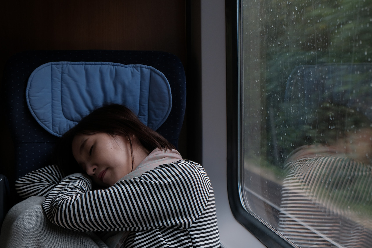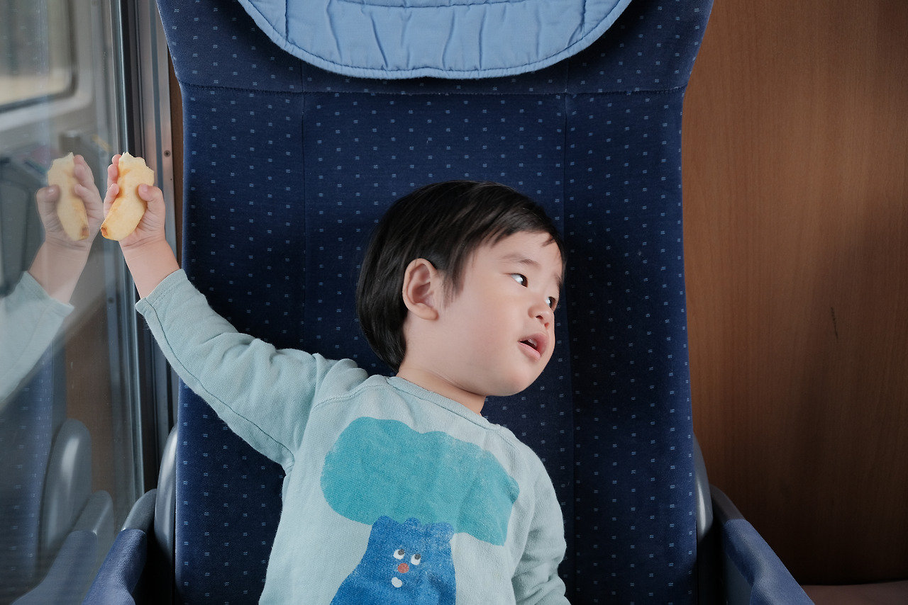 J는 자다 일어나도 컨디션이 좋았는지 사과를 하나 손에 들고 창밖을 구경하기도하고, 복도를 돌아다니기도 했다. 지루할만도 한데 지차, 치치 거리면서 기차타는 것을 너무 좋아했다.