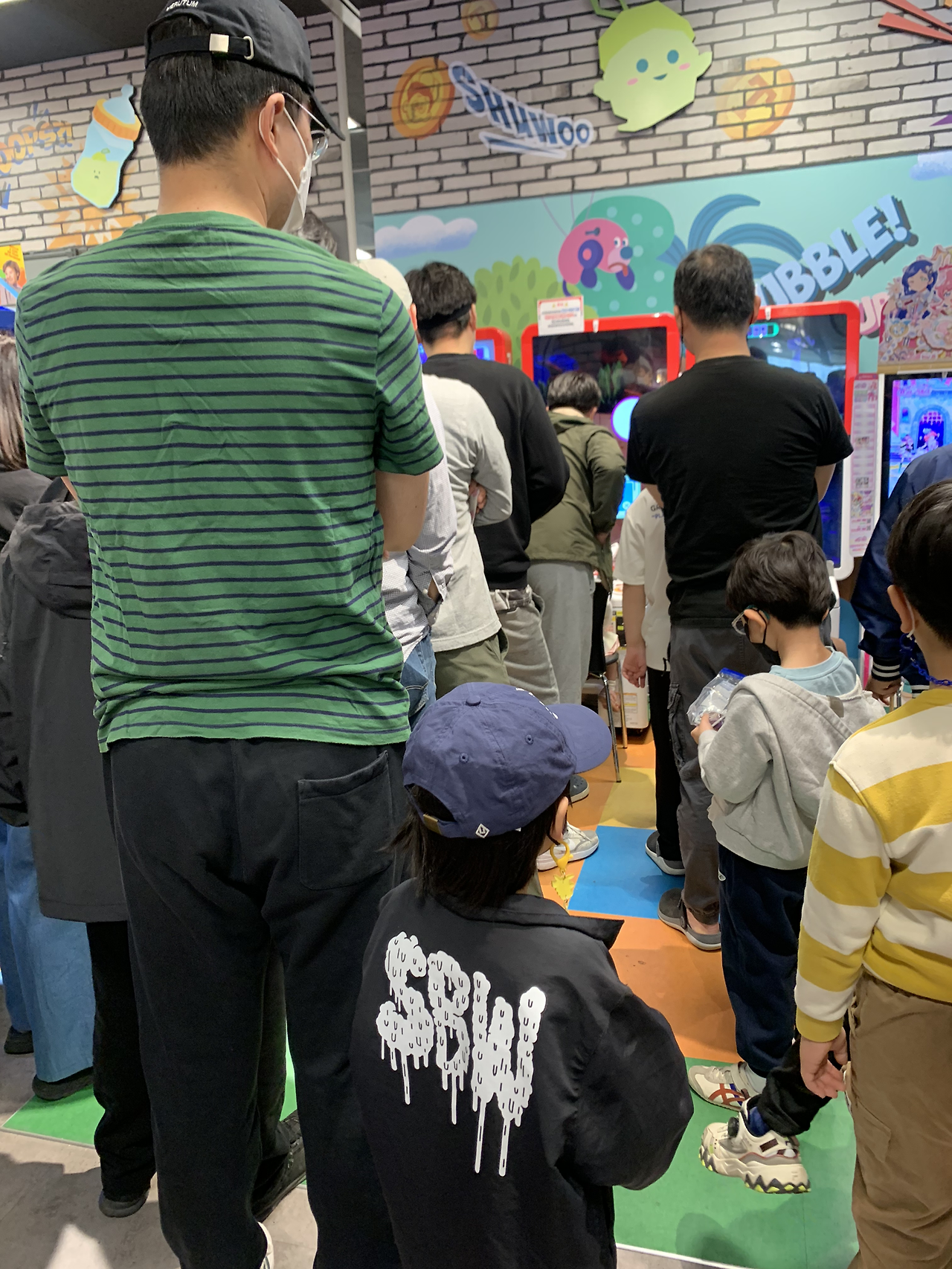 부모님들이다. 당연한 것이지만 돈을 사용해야하는 이 게임은 한판에 천오백원(포켓몬을 잡으려면 또 천오백원을 기계에 넣어야한다) 이나 하는 꽤 비싼게임이기에 어린이들은 대부분 부모님 혹은 둘 중 한명(대부분 아빠, 엄마는 마트 쇼핑중일 것이다) 과 함께 동행을 한다. 나도 그중 한명이고, 처음에는 줄서주고 동전만 넣어줬는데 왠걸...점점 나도 빠져들고 처음보는 옆줄 아빠와 어느새 관련 대화를 주고받고 있다. 모든 가족이 투입되어 총 3대의 게임기에 엄마, 아빠, 아들이 각각 한대씩 줄을 서서 플레이를 하는 모습도 종종 포착된다.