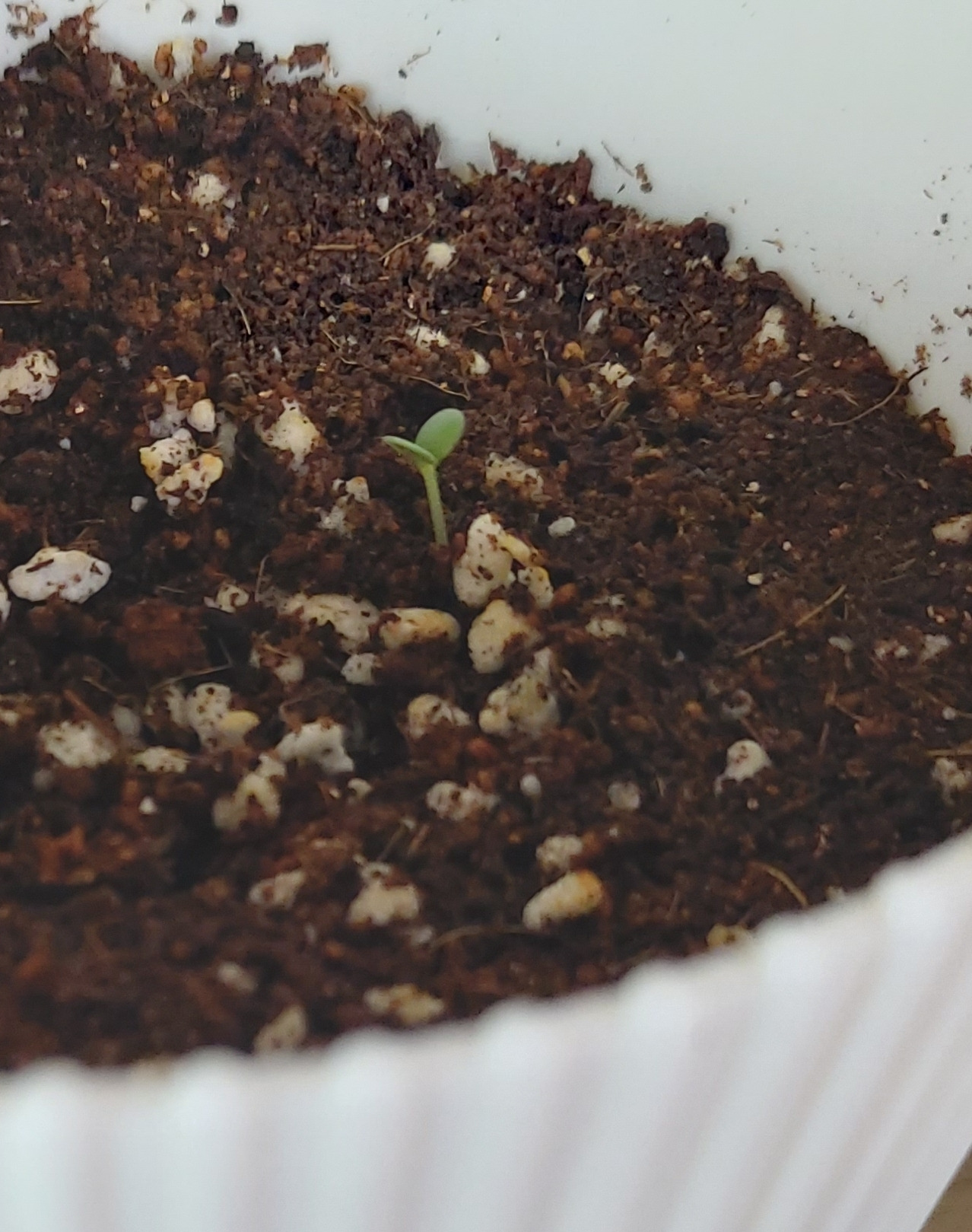 며칠 전 허브 화분에 새 떡잎이 또 하나 나왔다.