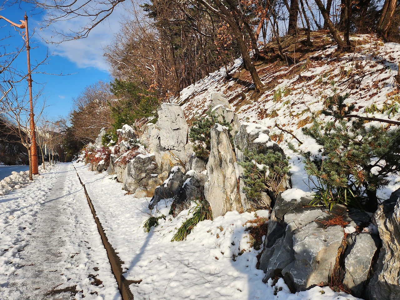 그 길은 담벼락이 큰 바위들로 되어있다.