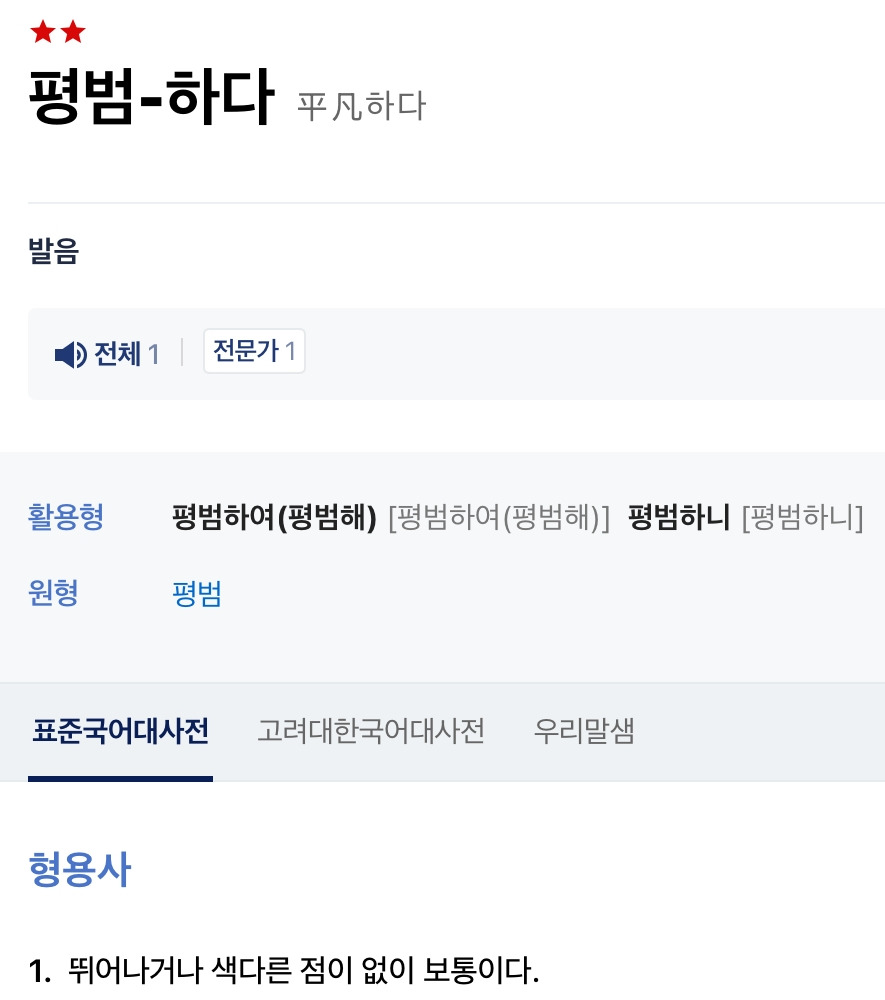 뛰어나거나 색다른 점이 없이 보통이다. 보통. 그럼 보통은 뭐지?