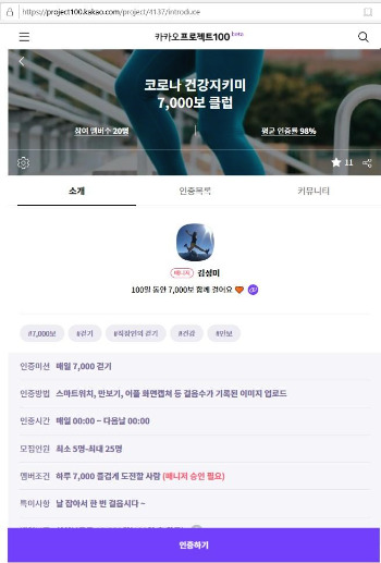# 카카 오플 젝트 100 - 코로나 건강지키미 7,000보 클럽