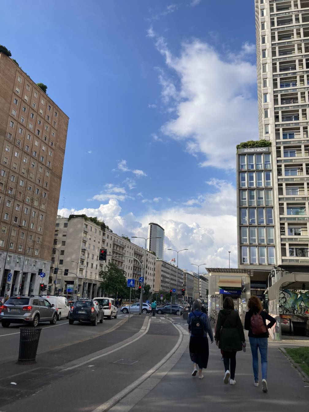대중교통을 이용하면 금방 갈 수 있었지만, 어차피 오늘 하루뿐이니 가는 길에 밀라노의 풍경을 눈에 담고 싶었다. 두오모까지 30-40분 정도 걸어가기로 했다. 현대적인 건물들이 높이 솟은 풍경이 낯설었다.