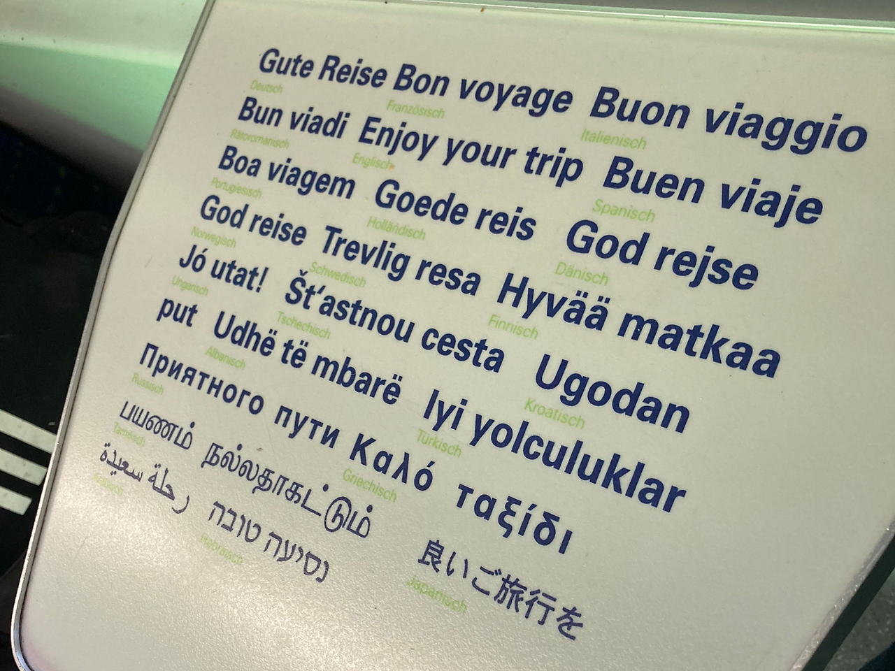 스위스 기차에 올라타자 세계 각국의 인사말이 보였다. 여행을 시작한 지 약 보름. 또 다른 여정의 시작이, 그간 조금 지쳐있던 우리를 다시 설레게 했다.