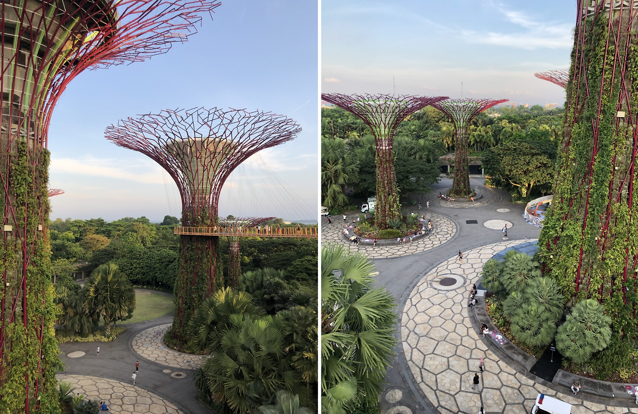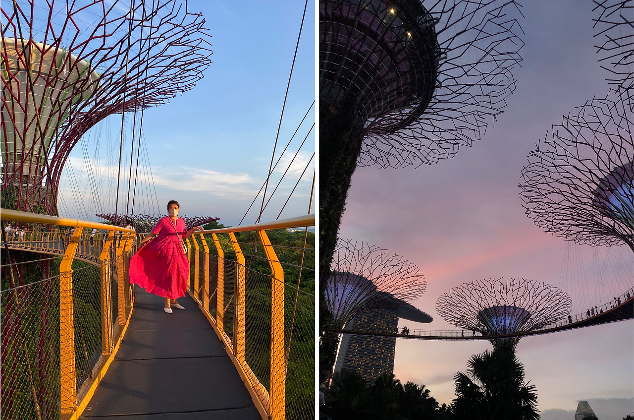 싱가포르는 평평한 땅이라 조금만 높이 올라와도 전망이 매우 좋다. 특히 가든스 바이 더 베이 주변으로 마리나 베이 샌즈 외에는 고층 빌딩이 없다 보니 더 높게 느껴졌다. 마리나 베이 샌즈 건물 뒤로 해지는 풍경과 이색적인 슈퍼 트리, 싱가포르 관람차까지 너무너무 좋았던 스카이 웨이.