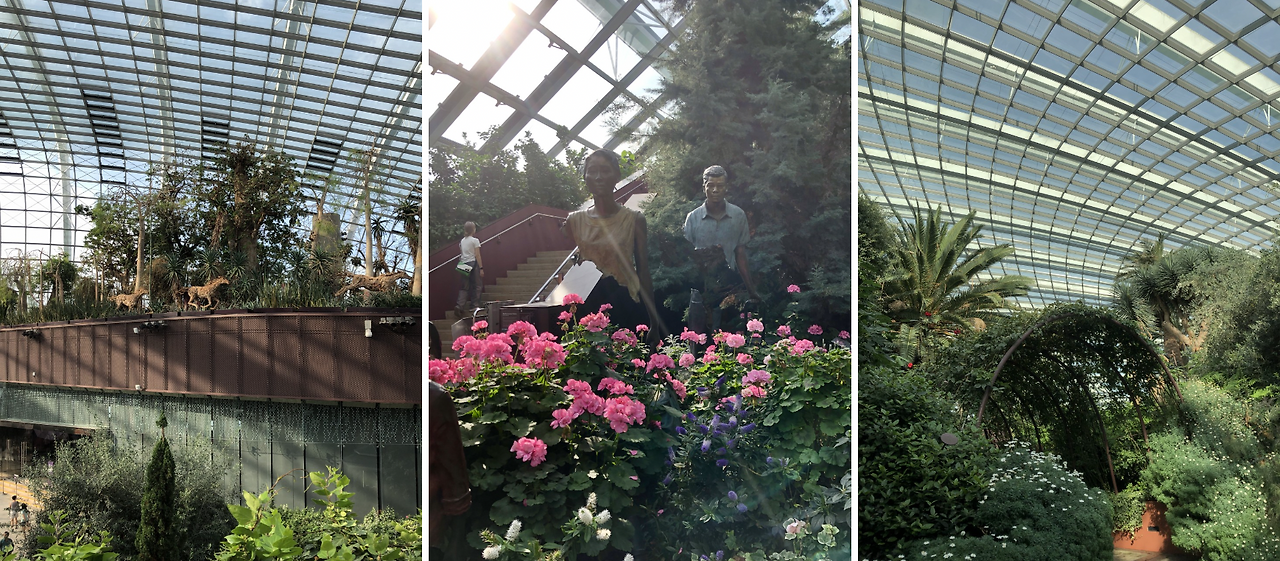 거대한 돔 아래 다양한 식물들이 가득한 플라워 돔. 더운 열대나라에서 온도를 조절하는 돔을 설치해 사계절 꽃을 볼 수 있다는 점이 특별하다. 입구 쪽에 위치한 다육식물과 선인장부터 나라별, 대륙별로 구성된 꽃과 식물을 구경하며 1층까지 쭈우욱 내려가는 동선이다.