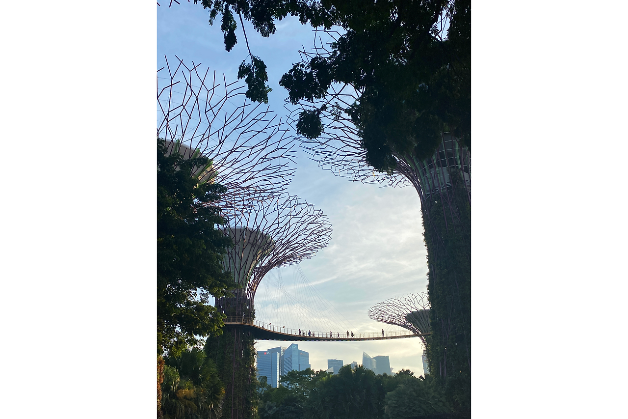 2012년 6월 오픈한 싱가포르 최대 규모 공원, 가든스 바이 더 베이. 화려하고 웅장한 건물 속 푸른 녹지라 스카이 파크 전망대에서 내려다볼 때도 멋졌던. 정원 속 하늘로 높이 솟은 슈퍼 트리 Super Tree. 빗물을 모으고 태양열로 에너지를 만드는 등 친환경 건축 설계로 싱가포르의 푸른 허브이기도 하다. 두 개의 슈퍼트리 사이에 연결하는 128m 길이의 OCBC 스카이웨이에서 해질녘 풍경을 보고 저녁에 랩소디 쇼를 볼 예정.