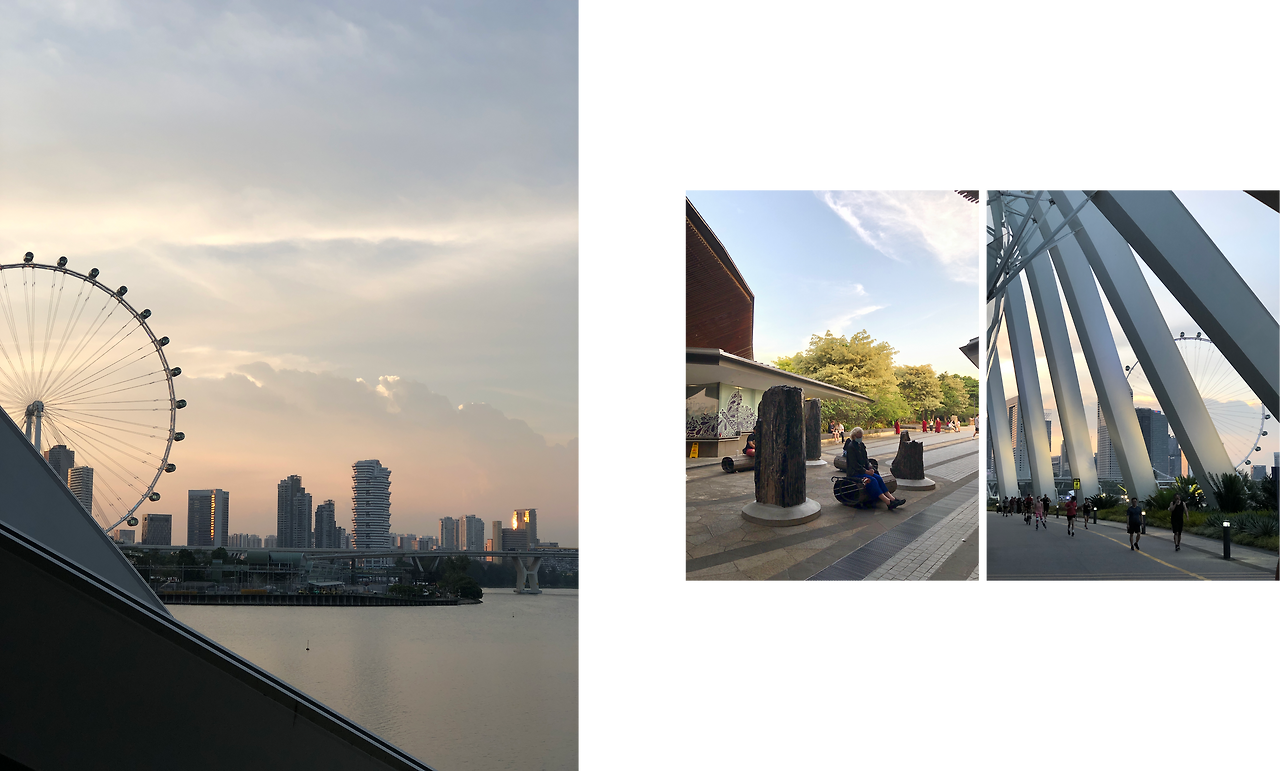 마리나 베이 샌즈 뒤로 이어지는 해안가를 따라 조성된 공원. 도심 속 공원에 걸맞게 누구나 쉴 수 있는 곳이다. 해질녘이라 운동을 하는 사람들도 많았다.