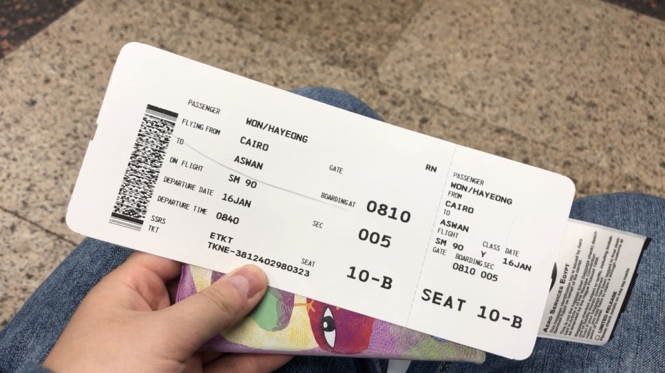 이집트 북쪽에 위치한 카이로에서 남쪽에 위치한 아스완으로 향한다. 아침 일찍 비행기 타러 다시 카이로 공항으로 향했다. 야간열차를 타고 밤새 가는 투어도 있지만 비행기를 타고 이동하는 투어도 있다. 비용 차이가 약간 있긴 하지만 역시 편한 건 비행기라 국내선 포함 투어를 선택했다. 야간열차도 타보고 싶긴 했는데 가이드님 말로는 제2차 세계대전에 사용했던 열차를 아직 사용하고 있다고! 돌아오는 비행기에서 열차팀에게 듣기로는 정말 힘들긴 한데 한 번쯤 타볼 만하다는 후기를 남겨주셨다.