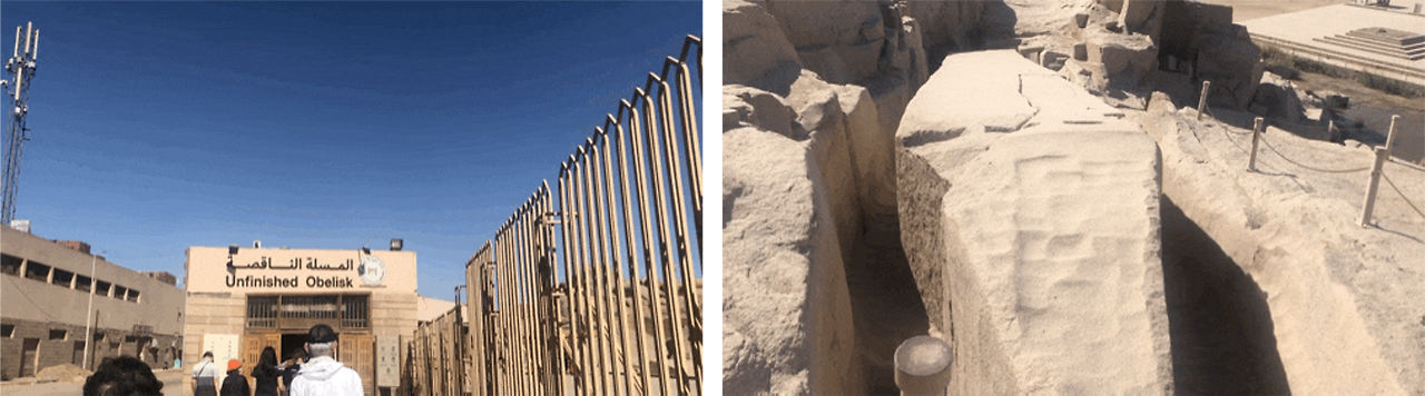신전과 무덤을 위해 사용한 화강암 채석장. 이곳에서 화강암을 잘라 피라미드나 신전의 석재로 사용했다. 어떻게 옮겼을지 밝혀진 건 없으나 최근 연구로는 나일강 범람 때 불어난 물을 이용해 무거운 돌을 옮겼다고 한다. 화강암보다 단단한 돌, 현무암으로 두드리고 틈에 나무를 끼고 물을 부어 갈라지게 만들었다고. 이곳에는 하트셉수트 여왕을 위해 제작된 미완성 오벨리스크를 볼 수 있다. 부러진 오벨리스크는 화강암 사이 누운 채 방치되어 있다. 거대한 화강암 암석을 어떻게 쪼개서 옮겼을까!