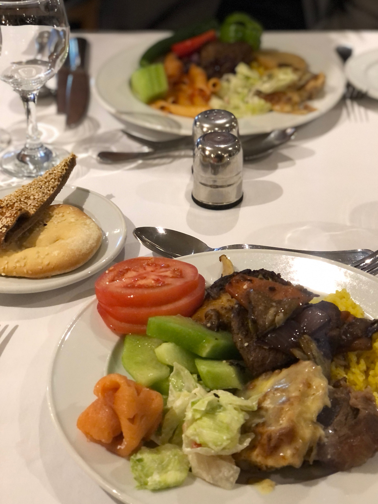 이집트 투어에서 아침 식사와 저녁 식사는 한식당을 제외하고 모두 호텔에서 먹는다. 크루즈는 오전 일정을 마치고 오후에 크루즈 근처 일정이나 배가 이동하기 때문에 점심도 크루즈에서 먹는 경우가 많다. 아스완 도착 후 크루즈 체크인한 뒤 점심을 먹는 일정이었으나 비행기가 예상보다 연착되었고, 크루즈가 선상에 정박을 못해 체크인이 딜레이 되었다. 아스완 일정을 먼저 진행하다 보니 2시가 넘어서까지 점심을 못 먹고 배고픔에 허덕인 우리 팀.. 체크인하자마자 점심을 먹었다.