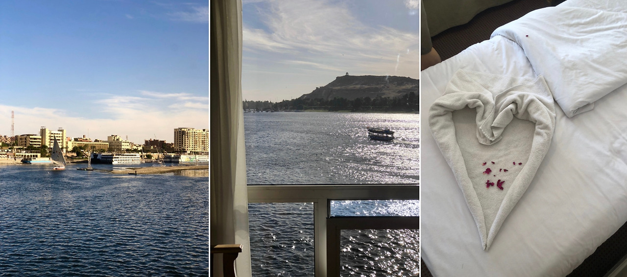 여행 중에 무엇을 볼지도 중요하지만, 어디서 묵을지도 고민된다. 이집트 패키지 여행은 카이로에서 5성급 호텔에 3박을 묵고, 이집트 일주를 하며 나일강 크루즈에서 3박을 한다. (후르가다 리조트 1박, 카이로 공항 근처 1박) 피라미드와 여러 유적들을 보는 것도 좋지만, 대부분 기대하고 오는 건 역시 나일강 크루즈 일정이다. 크루즈 여행이라 함은 도시 정박을 하며 여유롭게 투어를 하고, 밤새 배를 타고 이동! ...하는 걸 기대했지만 우린 효율 100% 알찬 한국 패키지. 실제로 여유롭게 진행되지는 않았다. 3일 동안 즐긴 크루즈 후기 시작!