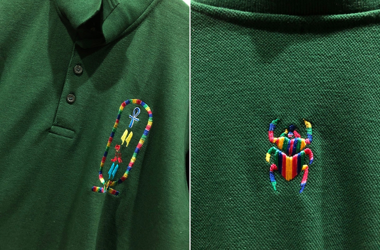 다음날 픽업한 우리 티셔츠. 그린색 폴로 셔츠를 선택했다. 뒷면에는 이집트에서 행운을 상징하는 쇠똥구리, 스카라베가 서비스로! 나름 귀엽다.