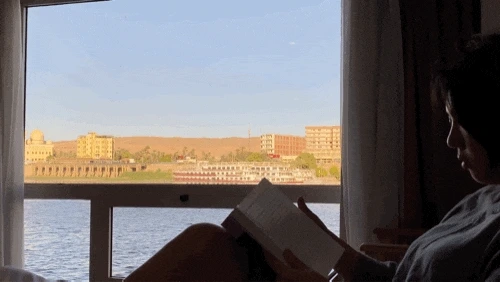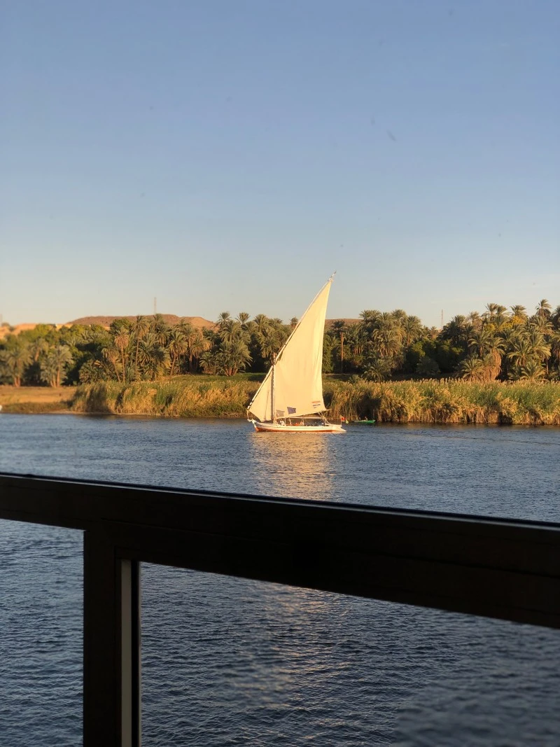 해질녘의 사막 분위기와 나일강. 특히 크루즈 옆으로 같이 달리는 펠루카! 낭만적인 풍경이다. 그냥 방에 누워 창밖에 보고 있기만 해도 좋았던 자유시간. 이집트 투어는 일정이 일찍 시작하고 일찍 끝나는 날이 많아 책이나 영화 같은 걸 준비하면 좋다. 특히 크루즈 이동할 때는 인터넷이 잘 안되기 때문에 미리 다운로드하기를 추천.