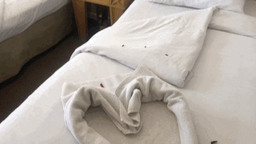 매일 룸 클린할 때마다 장미꽃잎과 함께 수건으로 하트랑 동물 모양... 귀여운 웰컴 인사다.
